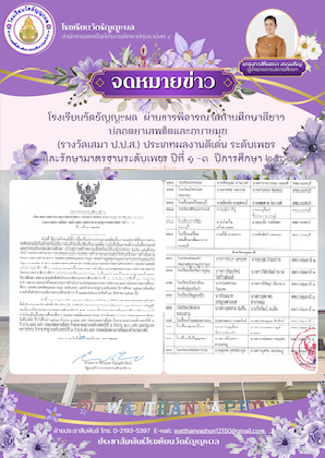 โรงเรียนวัดธัญญะผลผ่านการประเมินสถานศึกษาสีขาว ปลอดยาเสพติดและอบายมุข (รางวัลเสมา ป.ป.ส.) ประเภทผลงานดีเด่น ระดับเพชร และรักษามาตรฐานระดับเพชร ปีที่ ๑ -๓ ปีการศึกษา ๒๕๖๘