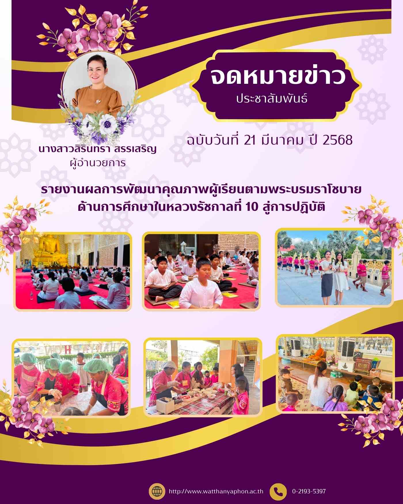 รายงานผลการพัฒนาคุณภาพผู้เรียนตามพระบรมราโชบาย