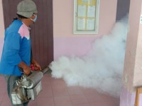 ฉีดพ่นยากันยุงทำลายแหล่งเพาะพันธุ์ลูกน้ำยุงลาย ป้องกันไข้เลือดออก
