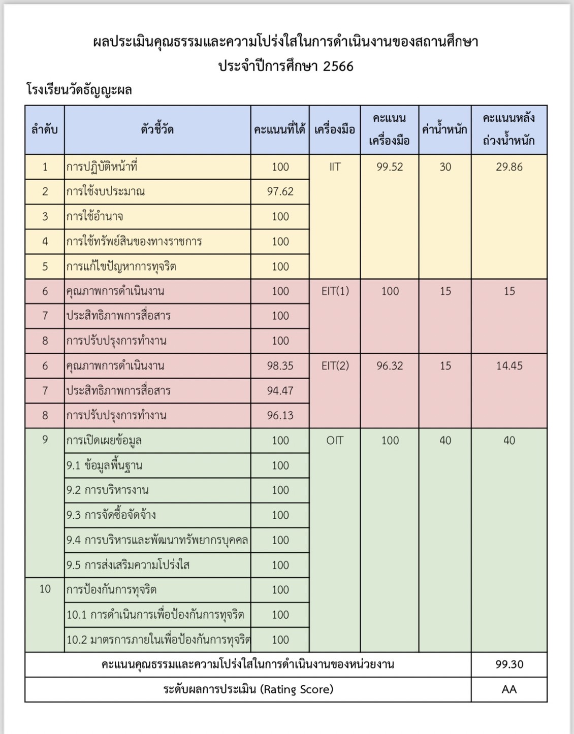 รายงานผลการดำเนินการเพื่อส่งเสริมคุณธรรมและความโปร่งใสภายในหน่วยงาน